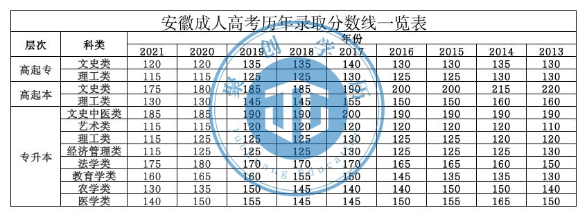 安徽省成人高考历年录取分数线-尊龙凯时人生就是搏